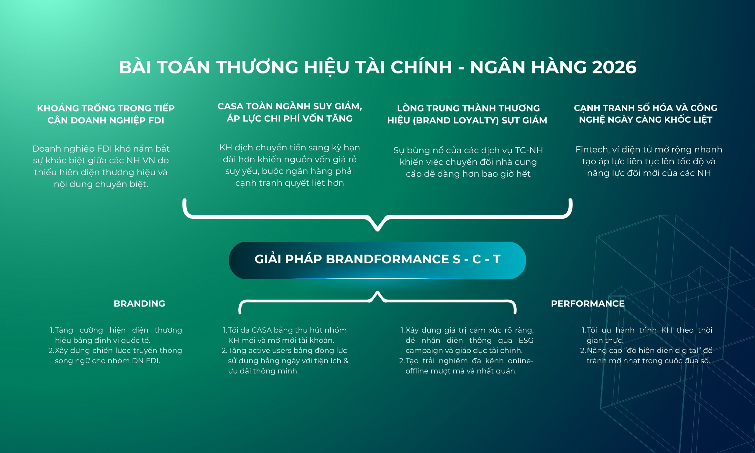 Đặc biệt, báo cáo bao gồm bộ định hướng chiến lược Brandformance dành riêng cho thị trường Việt Nam – giúp thương hiệu kết nối dữ liệu, nâng chuẩn cá nhân hoá, tối ưu chi phí vốn (CoF) và tối đa tỷ lệ CASA thông qua hành trình số, và xử lý bài toán lớn nhất của năm 2026: xây dựng niềm tin thương hiệu trong bối cảnh lòng trung thành suy giảm và cạnh tranh mở rộng sang hệ sinh thái fintech – TMĐT.