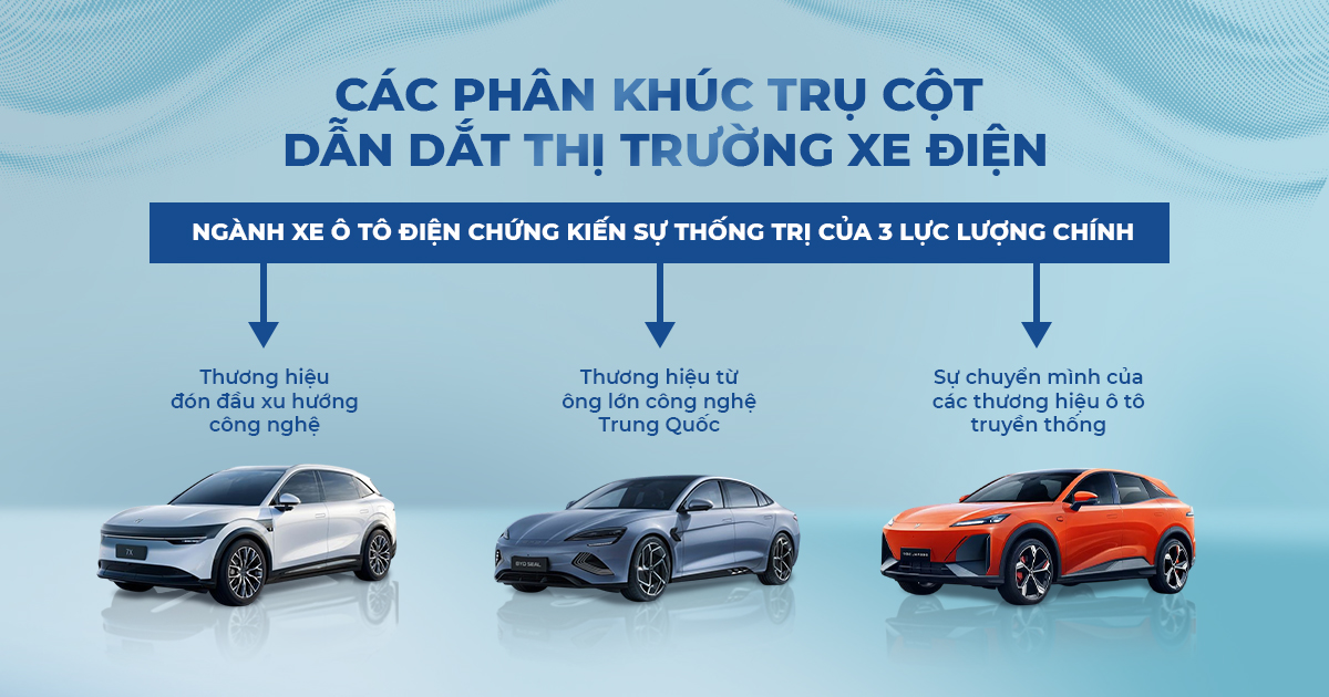 Tuy nhiên, khi công nghệ pin dần bão hòa, lợi thế cạnh tranh không còn nằm ở phần cứng mà chuyển dịch sang hệ sinh thái và trải nghiệm người dùng. Thị trường hiện được dẫn dắt bởi ba nhóm: các thương hiệu công nghệ, các hãng xe Trung Quốc tối ưu giá và chuỗi cung ứng, cùng các hãng truyền thống chuyển đổi sang điện hóa.